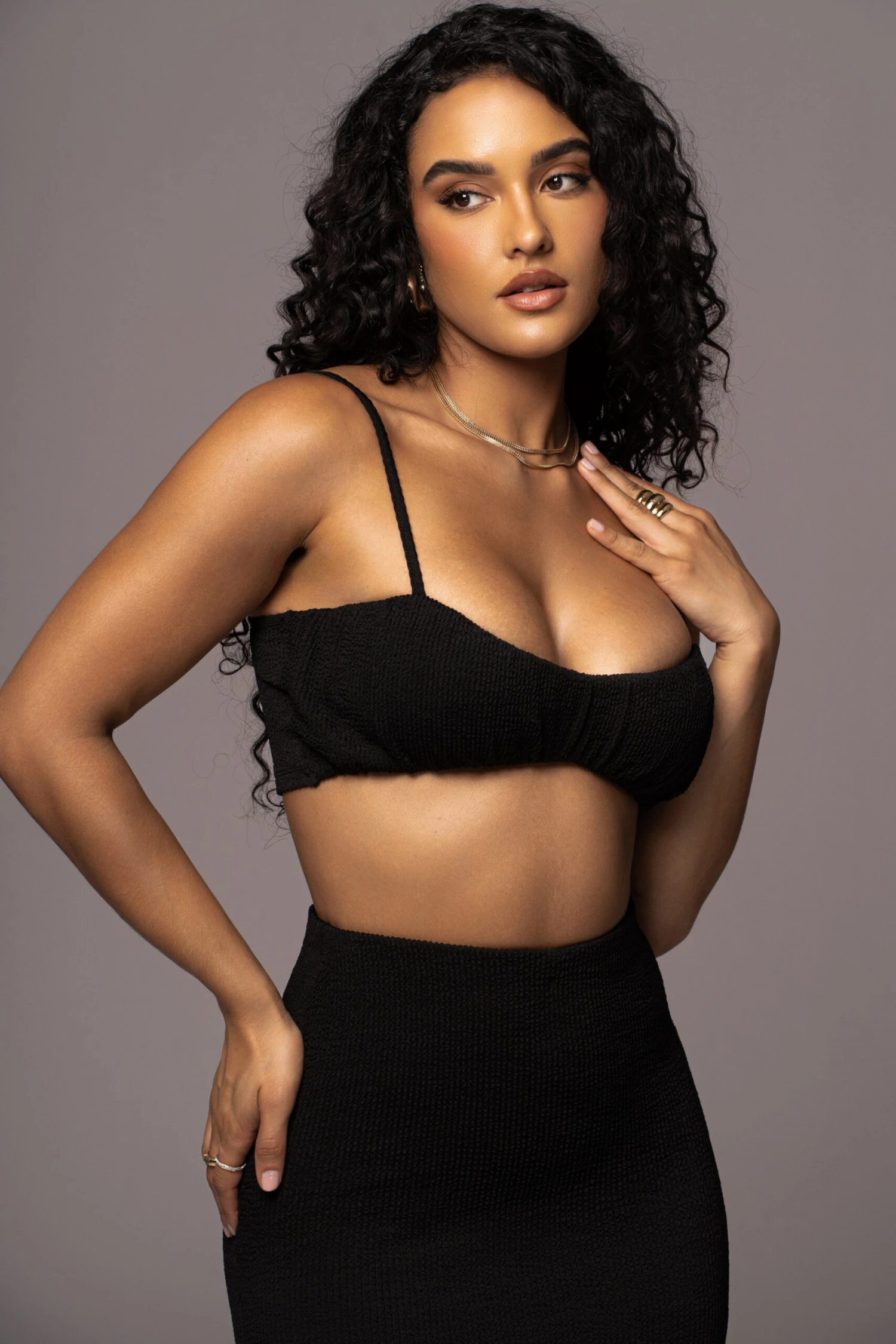 Our Black Fiji 2-Piece Skirt Set was made for Summer. This captivating two piece skirt set is designed in a smocked inspired fabric providing breathable comfort throughout the seasons. Featuring a bralette style top with adjustable shoulder straps while the matching skirt features an elastic waistband with fitted silhouette, back slit hem, and maxi hem. Single lined. Stretchy. Sold as set.