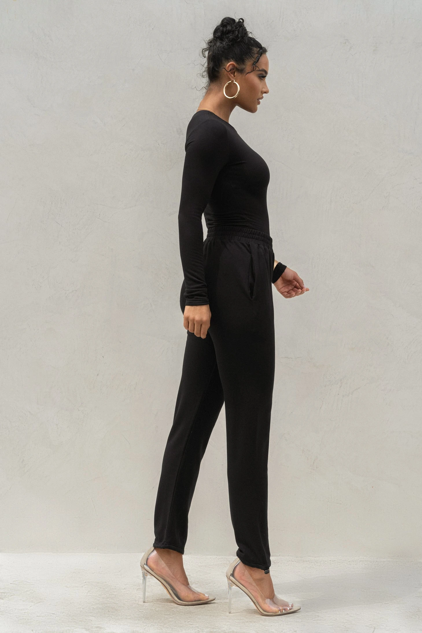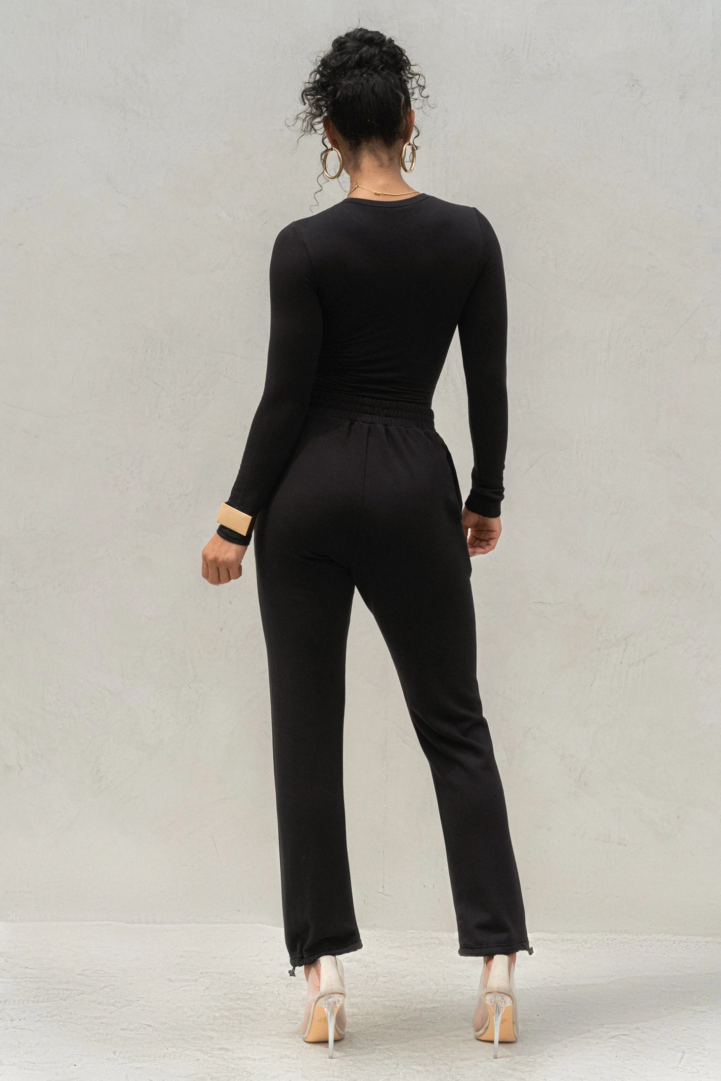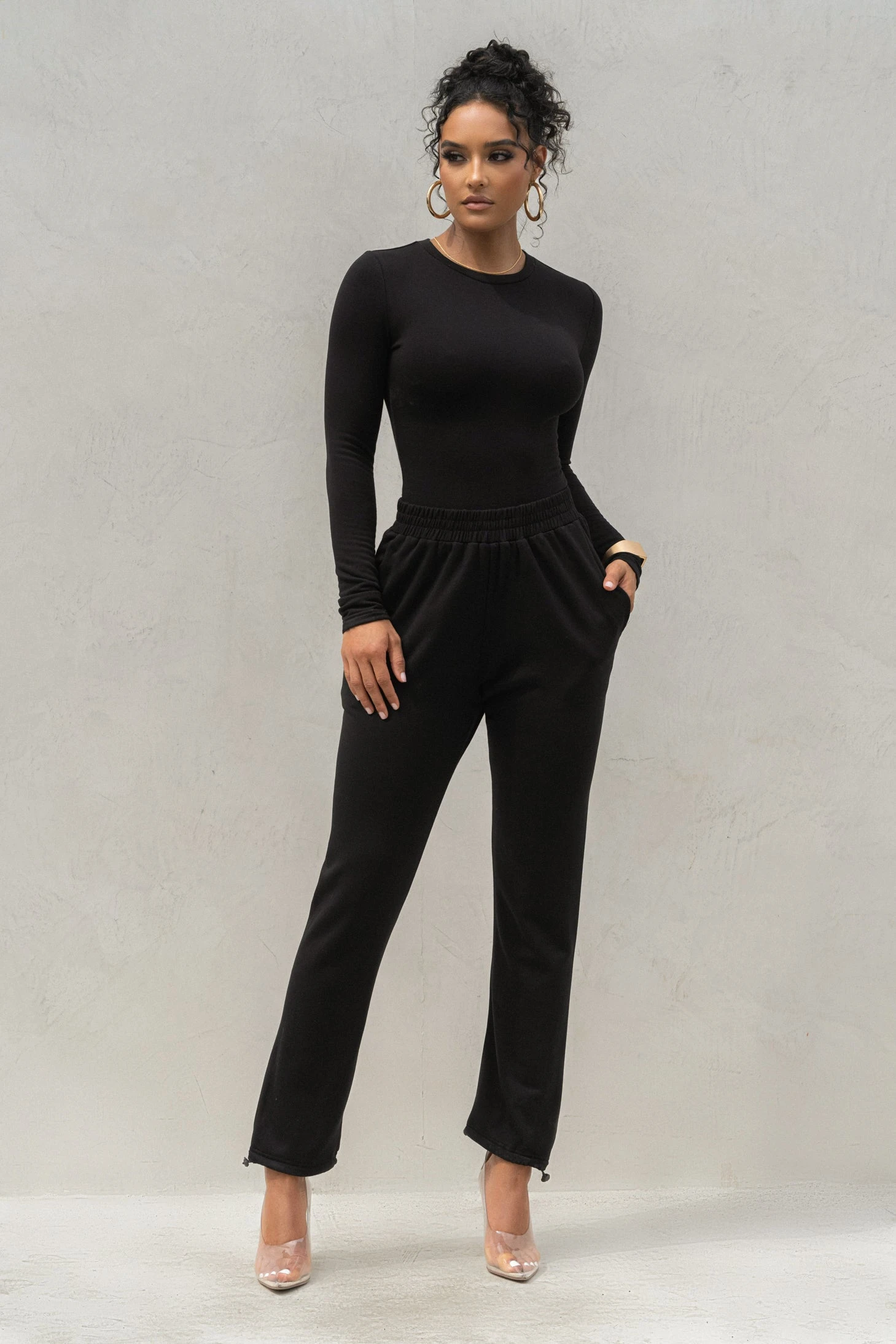 There’s no telling how far you’ll go in our Black No Limits Joggers. These modern sweatpants are constructed of a soft fleece fabric and highlight a ruched waistband with two functional side pockets, straight leg hems, and drawstring ankles for an optional jogger style look! Pair with our