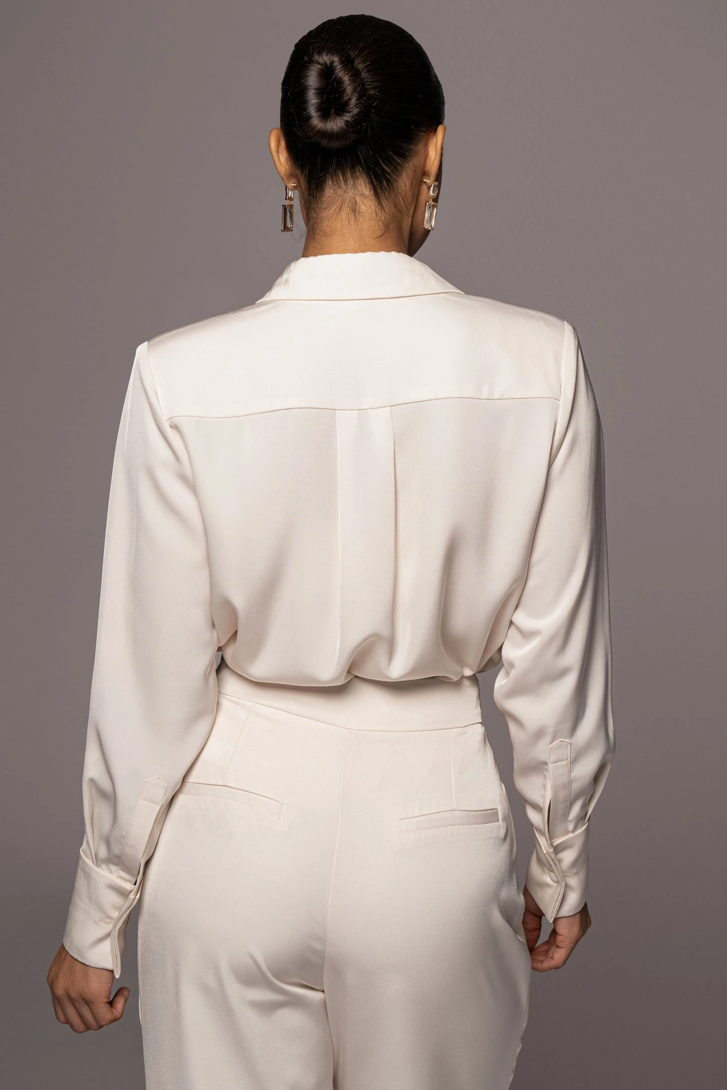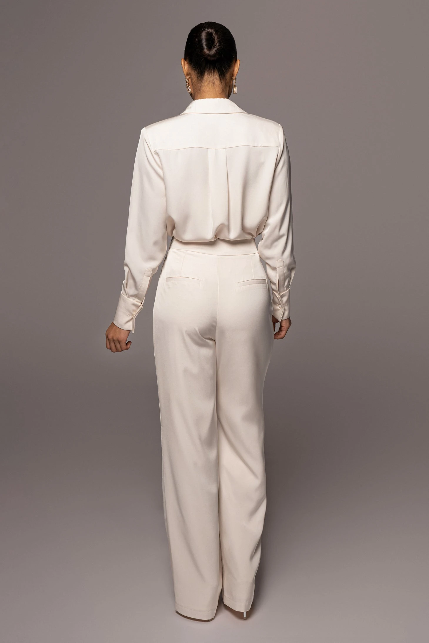 Our new Buttercream Candice Trousers provide polish and form! Featured in a lightweight fabric with satin like lining, these trousers come with a top waistband, pleat detailing, and straight leg hems. Complete with two back faux pockets and a side zipper closure. Coordinate the full look with ourÂ