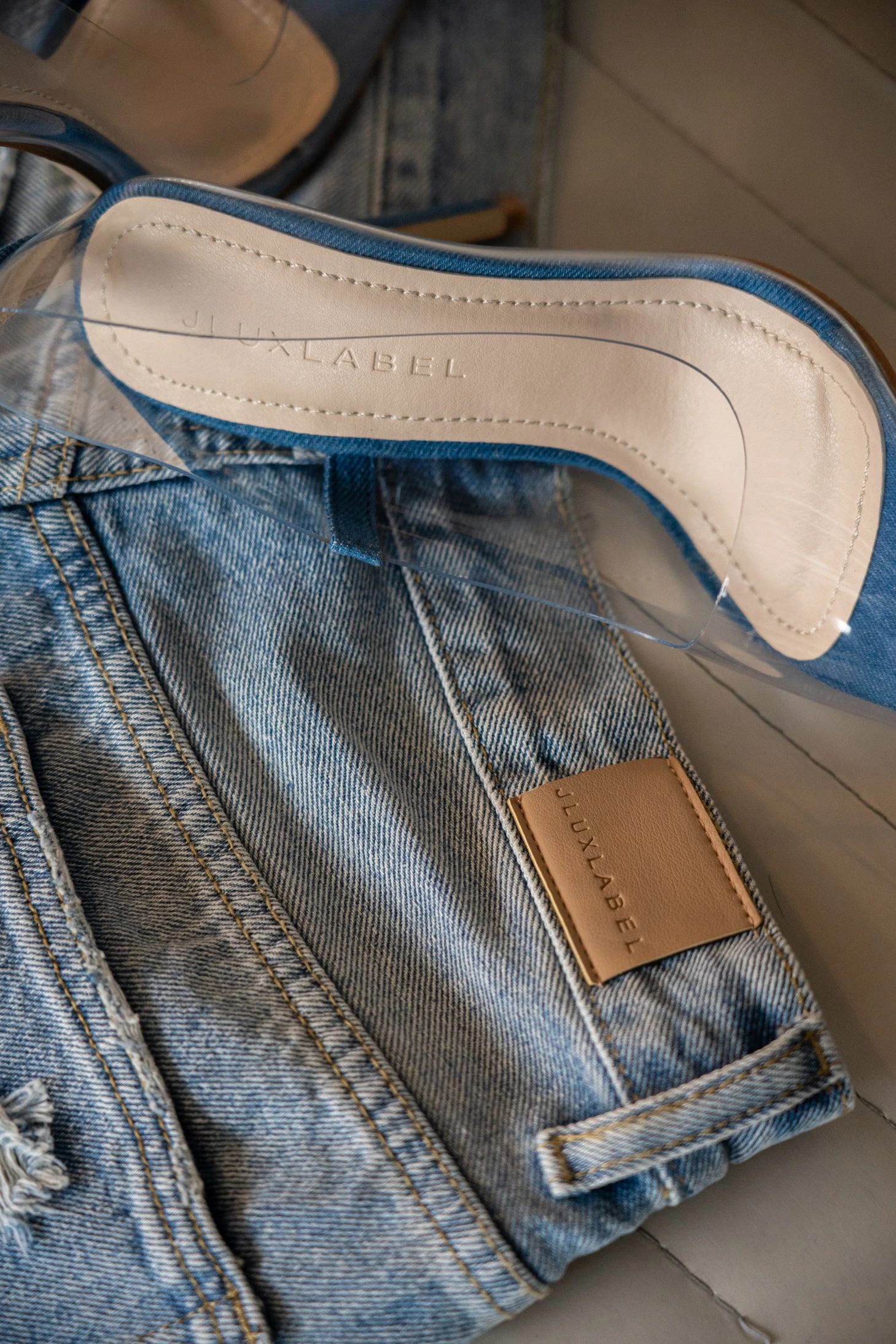 EXCLUSIVELY DESIGNED BY US FOR YOU. The choice is clear when it comes to our DARK DENIM WALK THE LINE CLEAR PUMPS! Made for all your magical nights, these ultra chic pumps showcase a translucent design with a denim like base and pointed toe. A must have add on to your heel collection!