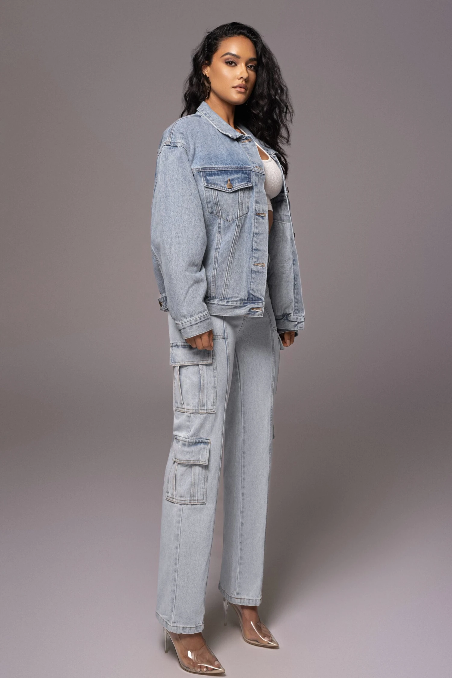 Add a classic touch to your look with our Medium Wash Denim Highlands Oversized Jacket. Featured in a oversized fit, this classic denim jacket comes with a collared neckline, chest/hand pockets, a button front closure and roll-up sleeves with buttoned cuffs. Minimal stretch.Â