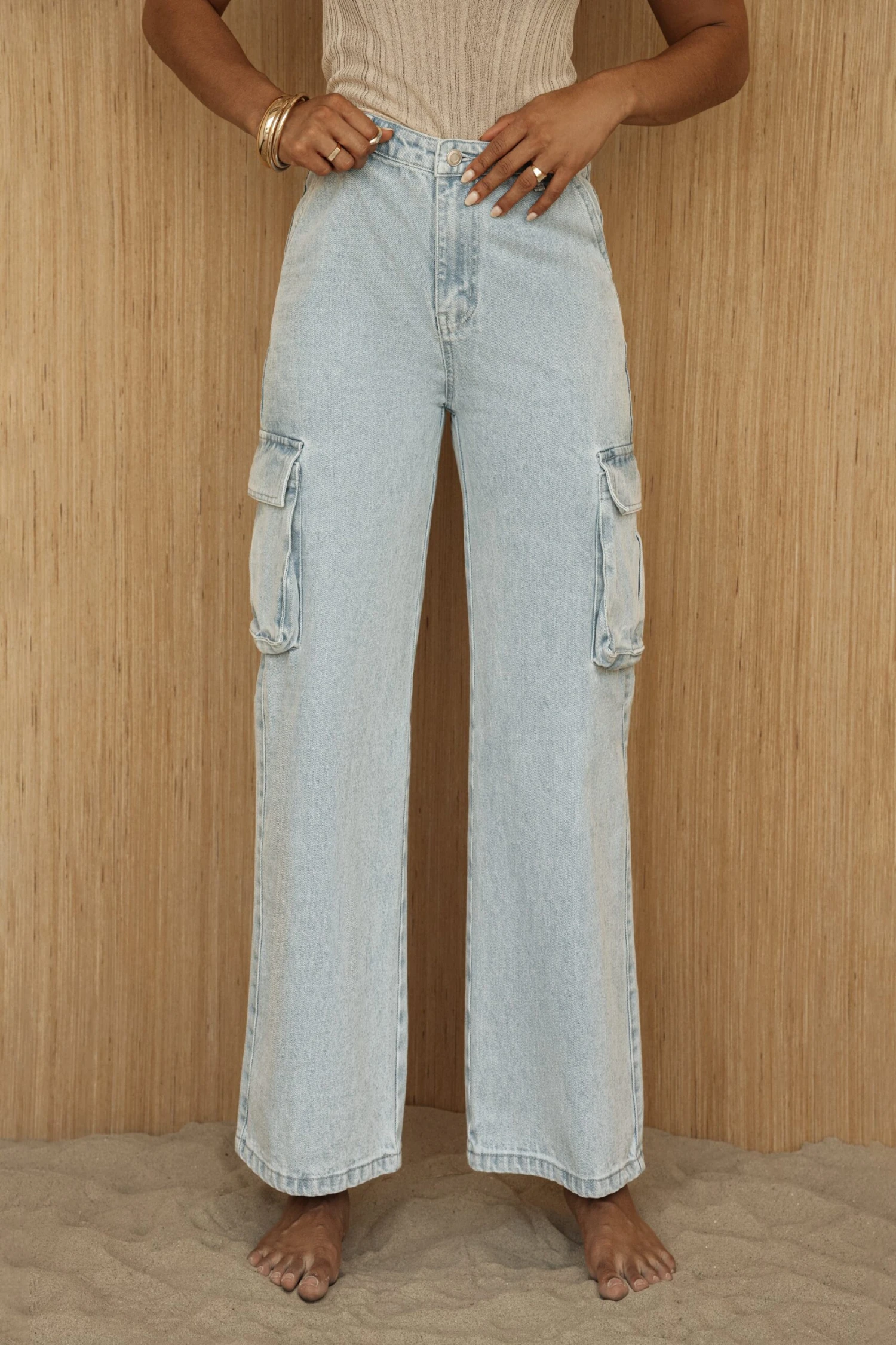 The new Medium Wash Denim Val Slouch Cargo Jeans will become your season-long staple! Adding perfect tailoring to your denim closet, our latest jeans feature a slouchy wide-leg silhouette with zip fly/button closure, and a cargo pocket design. Pair with our