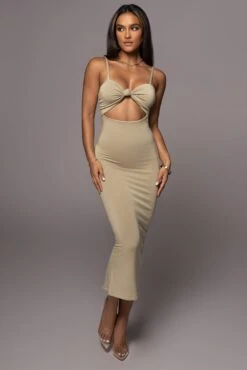 Stay chic around the clock in our Moss Midnight Memories Midi Dress. Crafted of soft brushed fleece fabric, this ultra soft midi dress features a knotted design with a front cutout, adjustable shoulder straps, and a back center slit at the hem. Mesh lined interior. Stretchy.