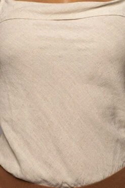 EXCLUSIVELY DESIGNED BY US FOR YOU. Our NATURAL DIARA BODYSUIT achieves breezy comfort. Designed of a linen blend, our newest bodysuit addition features a cowl neckline with thin adjustable shoulder straps. The lower waist of the bodysuit is made of smooth jersey fabric and ends in a thong back with a bottom snap closure. Pair with ourÂ