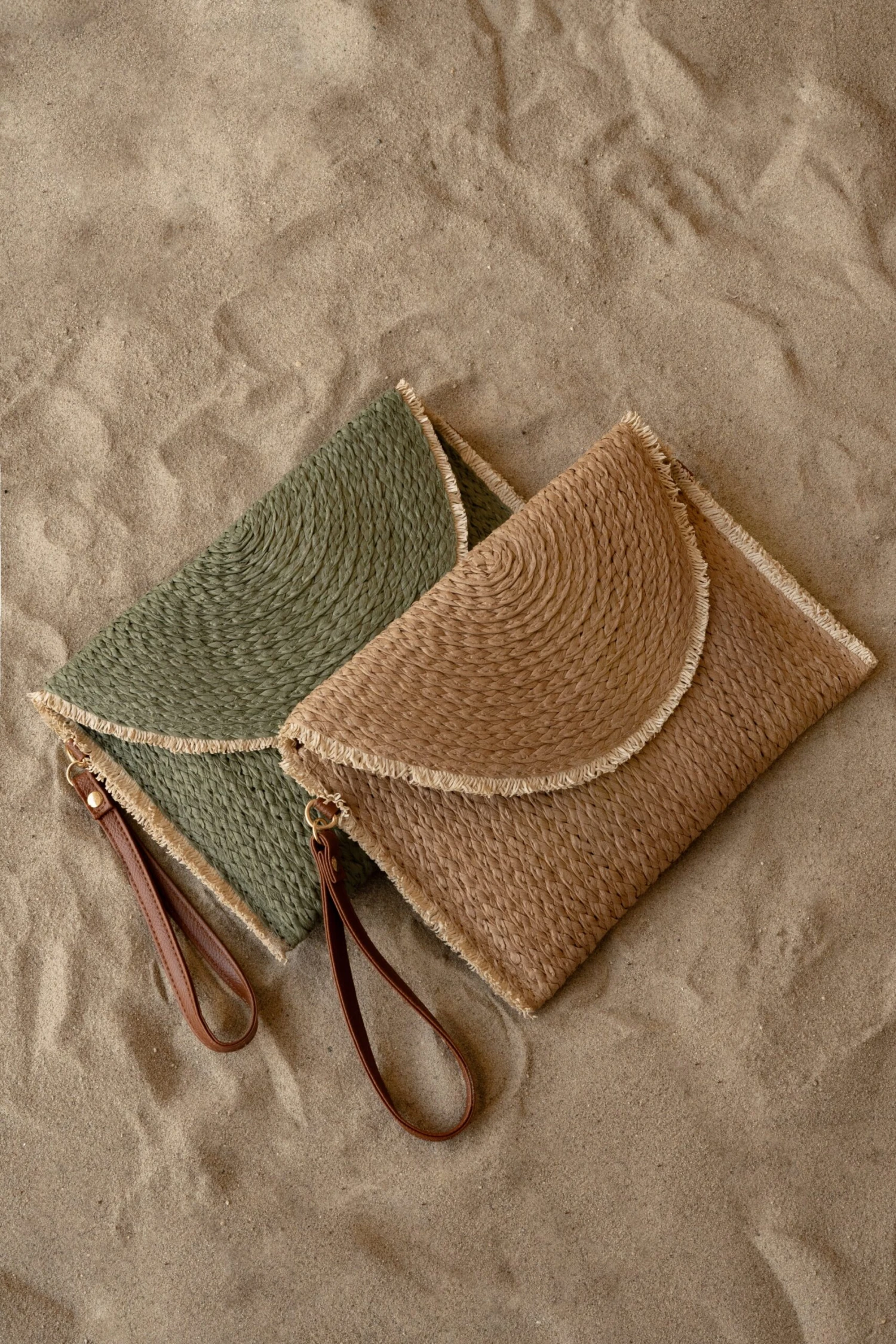 Fall in love with our Natural Kallie Straw Woven Clutch! This stylish clutch features a woven design shaped in a stylish envelope silhouette with hidden magnetic closure. Complete with a fully lined interior and a single sidewall pocket.Â