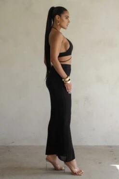 The set of your dreams is here with our Noir Zurie 3-Piece Skirt Set. This all-in-one skirt set features a delicate bikini-style top with an elastic band, neck ties, and back string tie closure. The matching skirt features a pencil silhouette with elastic waistband and a maxi-length hem. A breathable long-sleeve tops off the look for stylish coverage. Crafted of lightweight knit fabrication for transitional style. Stretchy. Sold as set.
