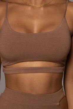 Shift into the new season with our Pecan Eizelle Skirt Set. This stretchy skirt set comes with a modern crop top featuring adjustable shoulder straps and a front cutout by the hem. The matching skirt is topped with an elastic waistband detailing a cutout side with a pencil silhouette. Double lined. Sold as set.