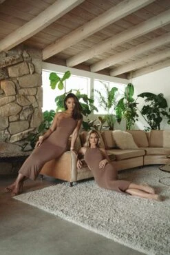 Show off just the right amount of skin in our Pecan Empress Midi Dress. This fitted midi dress features a racerback cut with adjustable crisscross straps and a removable gold tone chain that heightens its elegance. Double lined. Stretchy.