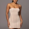 Stay out dancing all night in the new Pecan Unapologetic Mini Dress! Designed in a lovely mesh material, this mini corset dress features a strapless neckline with a lovely mini hem. Boning detail throughout the design add structured texture offering extra support. Complete with no slip silicone grip at the bust for a secure hold and back zipper for closure. Interior lining. Some stretch.