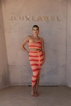 Head out for some fun in the sun with our Red Good Times Crop Top. This trendy lightweight top features a one shoulder neckline with an adjustable strap and cropped hem. A striped pattern throughout adds a playful element in vibrant hues. Pair with our